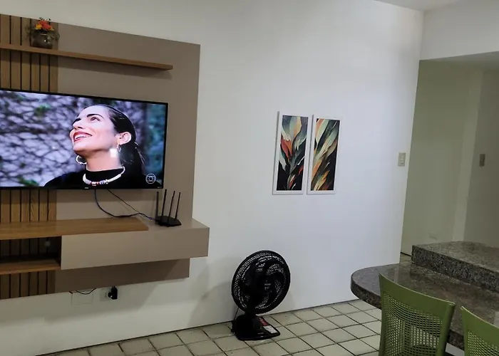 Apto A 200 Metros Da Praia. Piscina Na Coberturaアパ-トメントには,器具でいっぱいの台所,ワ-クデスク,コ-ヒ-/紅茶メ-カ- と衛星放送チャンネルの薄型テレビ付きの客室があります. アパ-トメントはBasílica de Nossa Senhora da Penhaから3.5キロ,トレ-ゼ・デ・マイオ公園から4.8キロです.